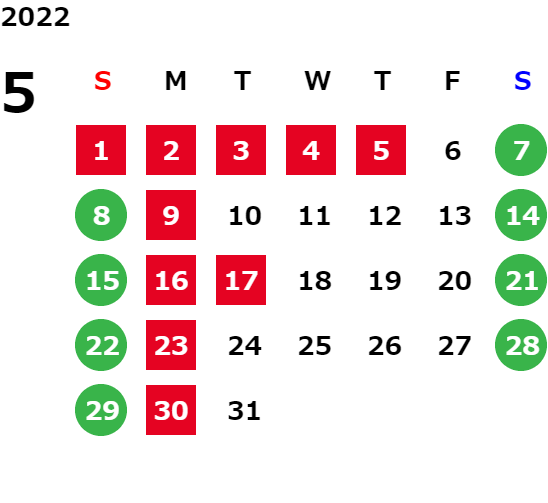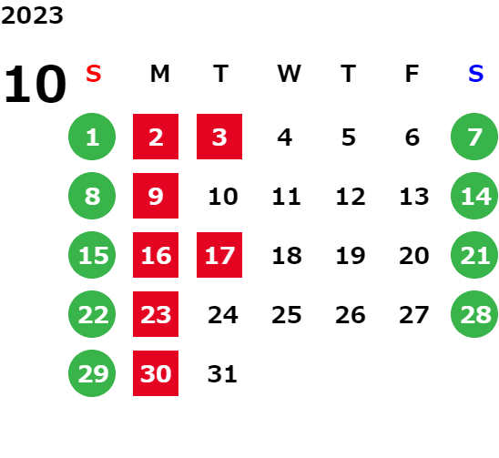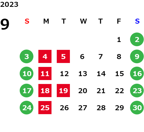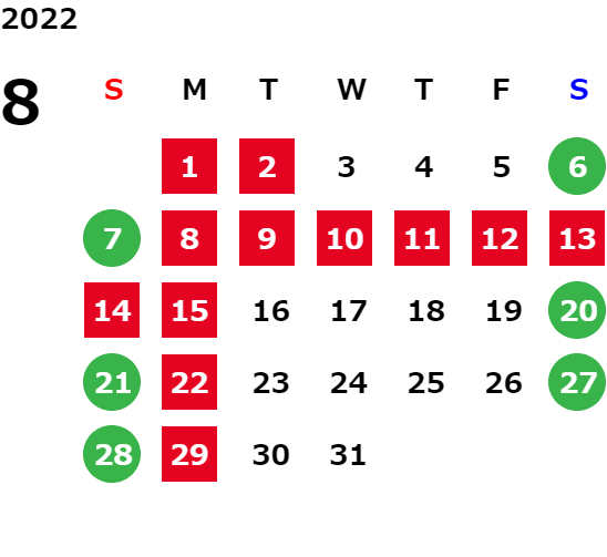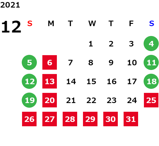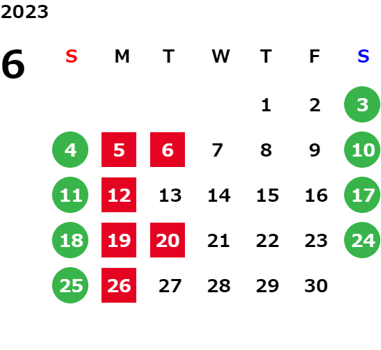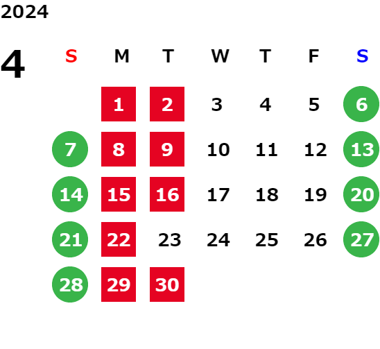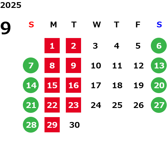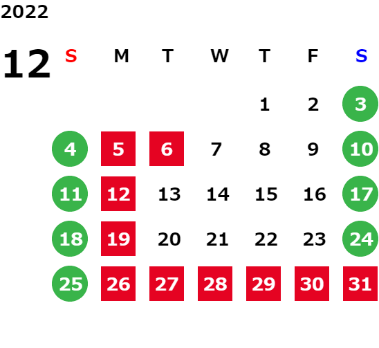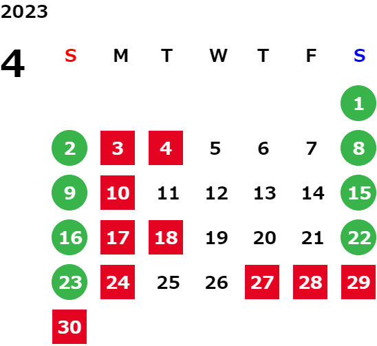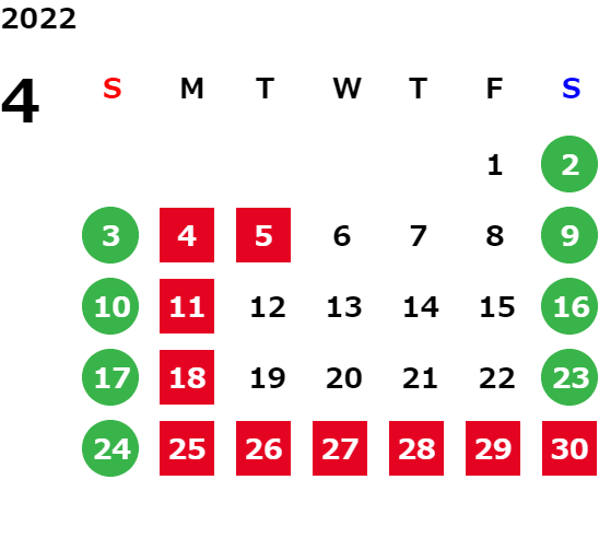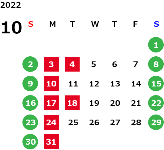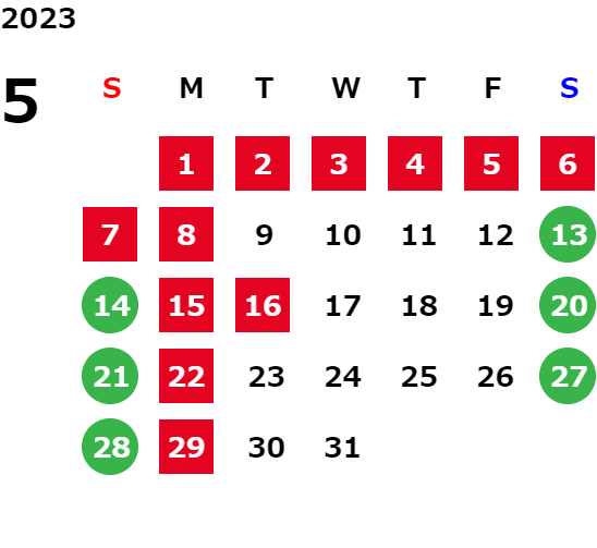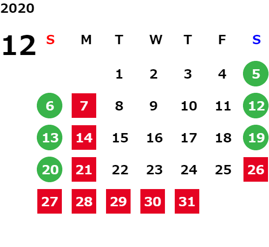 営業日カレンダー