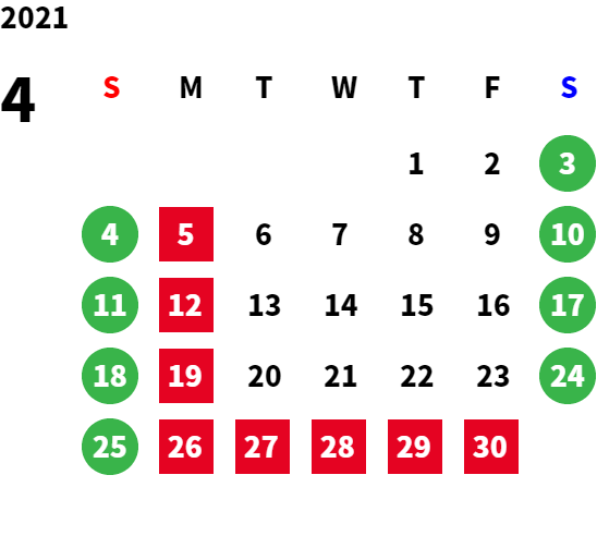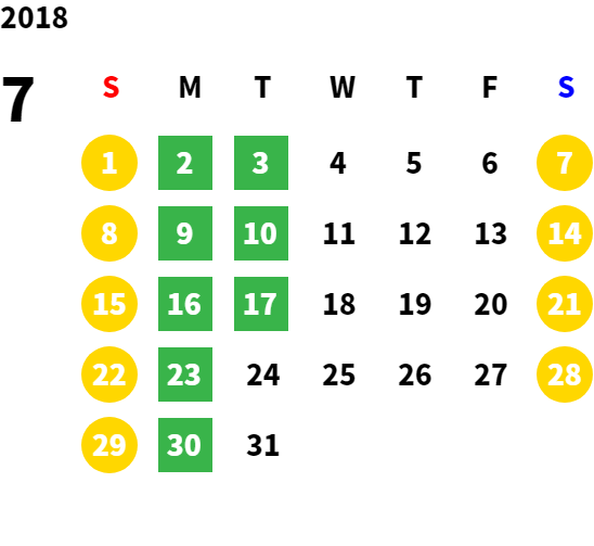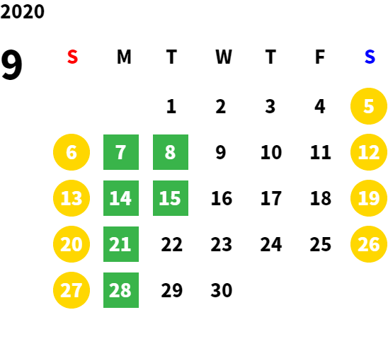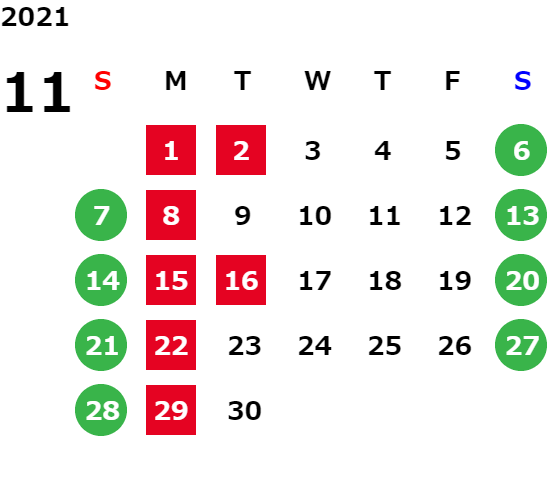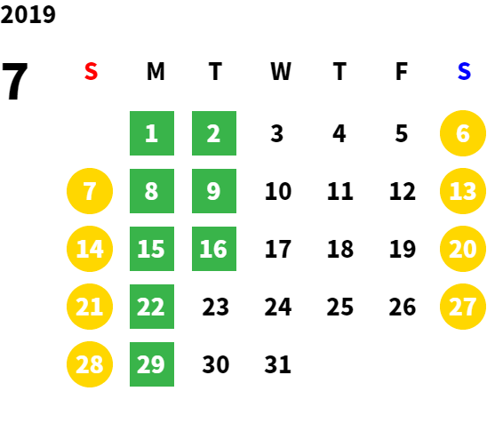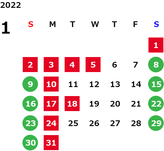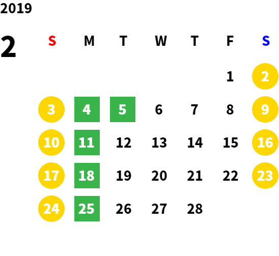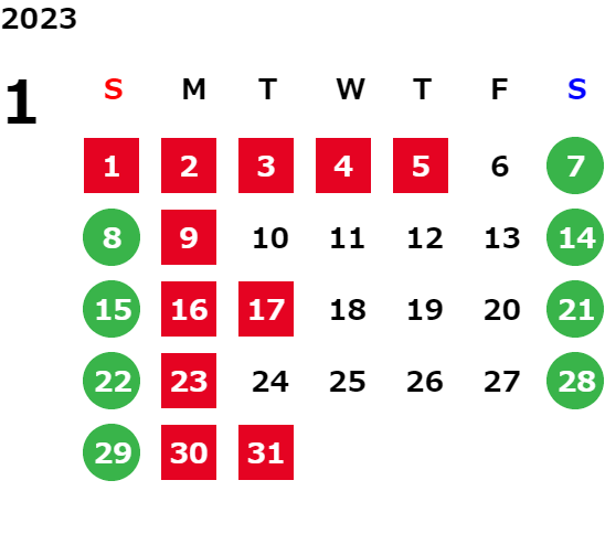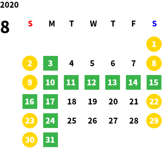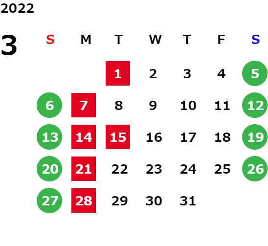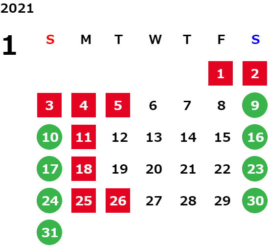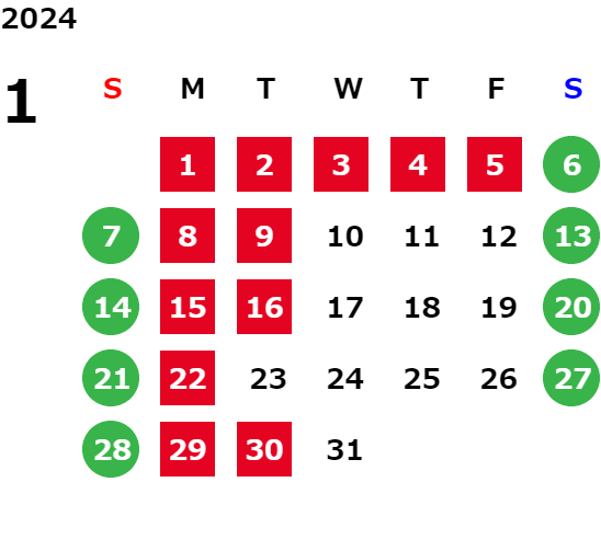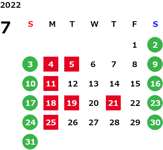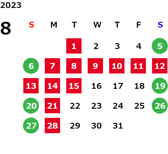営業日カレンダー